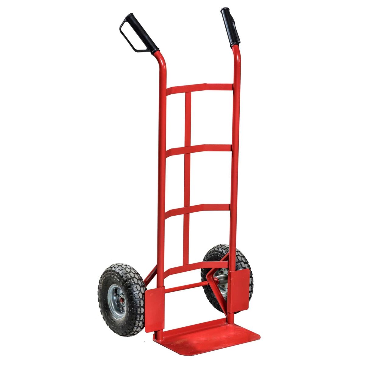 Transpotna kolica s pneumatskim gumama na pumpanje. Nosivost 150kg. Ergonomske ručke s plastičnim navlakama za lakše upravljanje.